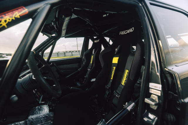 Als die Deutsche Tourenwagen Meisterschaft noch eine der schärfsten Rennserien der Welt war, wechselte gerade die Dekade gerade von den 1980ern auf die 1990er. Die Modelle der unteren Mittelklasse, die sich auf deutschen Straßen im Alltagsverkehr begegneten, traten an Wochenende in wilder Kriegsbemalung auf europäischen Rennstrecken und Flugplatzkurven im Niemandsland gegeneinander an. Der wohl spektakulärste Bolide seiner ehemals familiären Art war der Mercedes-Benz 190 E 2.5-16, der gerade in seiner spitzesten Ausbaustufe Evo II die Gegner auf und abseits der Piste in Angst und Schrecken versetzte. Bis heute ist der Viertürer auf der Straße ein Hingucker und was für einer, denn selbst in Miami Beach holen Autofans die Smartphones raus, um ein Foto vom deutschen Darth Vader zu bekommen. Seine schwarz-blaue Metalliclackierung mit dem internen Farbcode 199 stammt aus dem Daimlerschen Serienlager; gleiches gilt für Lampen, Rückleuchten, Kühlergrill, Spiegel und weitere Kleinteile. Doch sonst hat der Evo II nicht mehr viel mit dem begehrten Baby-Benz gemein.