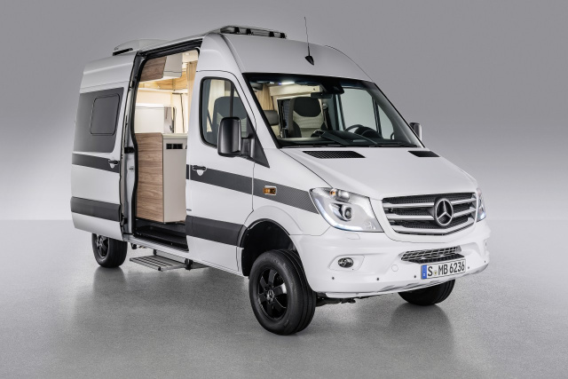 Sicherheit und Vielseitigkeit machen den Sprinter für Aufbauhersteller attraktiv. So ist der aktuelle Sprinter der einzige Transporter, der als Grundfahrzeug mit Seitenwind-Assistent ausgestattet ist. Die elektronische Hilfe ist für Reisemobile von besonderer Bedeutung. Sie reagieren auf Seitenwind konzeptbedingt sensibler als Pkw, da die Seitenwand dem Wind eine größere Angriffsfläche bietet. Neben dem Seitenwind-Assistent sorgen vier weitere optional erhältliche Assistenzsysteme an Bord des Sprinter für ein hohes Maß an Sicherheit: Spurhalte-Assistent, Totwinkel-Assistent, Fernlicht-Assistent und COLLISION PREVENTION ASSIST. Eine neue Gewichtsvariante des Sprinter mit 5,5 Tonnen zulässigem Gesamtgewicht ermöglicht jetzt zusätzliche Möglichkeiten für den vielseitigen Reisemobilausbau. Denn mit der Erweiterung des Modellprogramms steigt die maximale Nutzlast beim Kastenwagen um knapp eine halbe Tonne auf maximal 3,15 Tonnen, das Fahrgestell mit Fahrerhaus hat nun eine Tragfähigkeit von bis zu 3,46 Tonnen. Damit erreicht die Nutzlast des Sprinter ein Rekordniveau in dieser Gewichtsklasse.