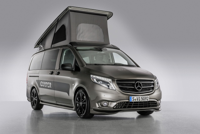 Im Bereich der kompakten Reisemobile zeigt Mercedes-Benz den Vansportscamper von Aufbauspezialist Terracamper und Hartmann Tuning. Dieser hat den Vito Tourer als Grundfahrzeug. Das kompakte Reisemobil verbindet expressives Design und Sportlichkeit. Mit mattschwarzem Schlafdach und mattschwarzen Aluminiumfelgen sowie Karosserie-Anbauteilen von Hartmann, hat der Vansportscamper ein prägnantes Außendesign.