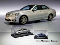Die Auswahl der E-Klasse-Modelle (rechts im Bild, vergrößert sich durch Anklicken!) ist fast so groß wie beim Original der Baureihe W212. Lieferbar sind drei Maßstäbe (1:18, 1:43 und 1:87), die zwei Ausstattungsvarianten Avantgarde (nur 1:18 und 1:43) und Elegance sowie drei Originalfarben pro Modell. Die größten Kleinen im Maßstab 1:18 kommen von Minichamps und kosten 59,90 Euro. Für den Maßstab 1:43 zeichnet Schuco verantwortlich, der Preis beträgt 27,90 Euro. Busch sorgte für die Umsetzung in den H0-Maßstab 1:87. Die Mini-Minis kosten 15,90 Euro.